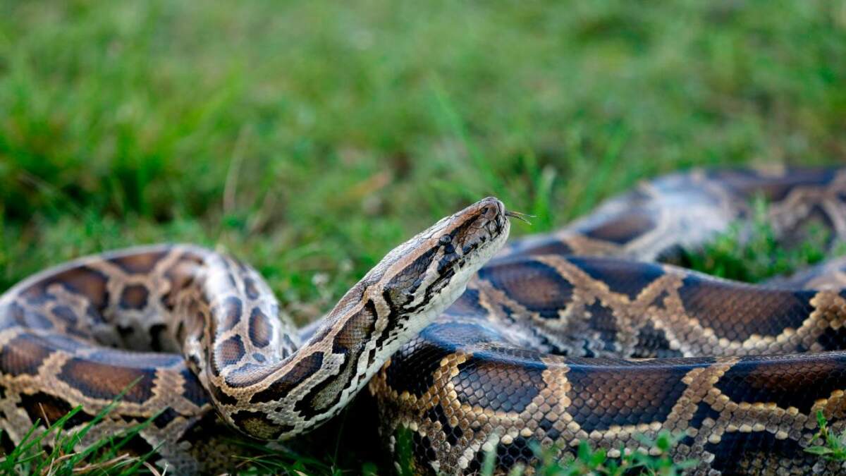 A man substituted a face mask for his pet python on a bus while other passengers look on in shock. Photo: Getty Images
