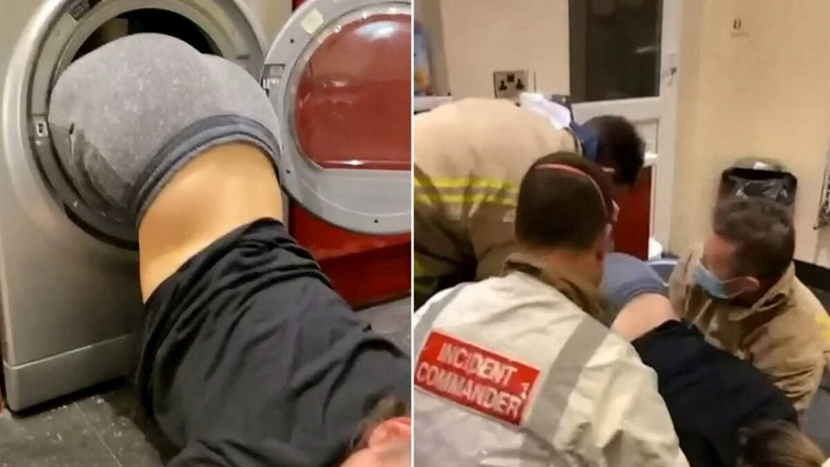 A drunk college student had to be rescued by firefighters when she got stuck in her dryer on a dare! Photo: YouTube