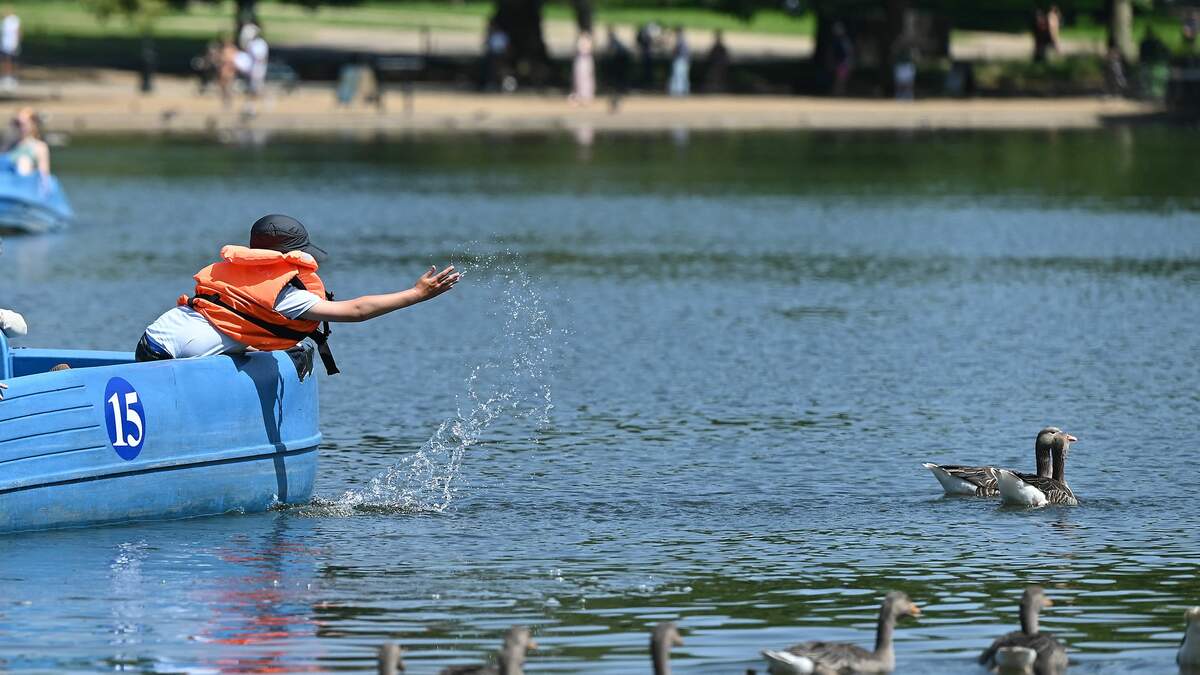 He jumped in a small lake, and tried to swim to the other side to get away. But it turned out he isn't a strong swimmer and couldn't swim very fast.