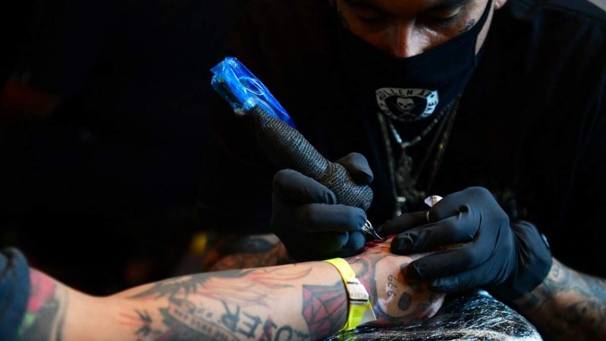 Turns out it's not. The TSA responded to a question about it, and said tattoo guns ARE allowed in carry-ons. So is tattoo ink as long as it's in a bottle that's 3.4 ounces or less.
