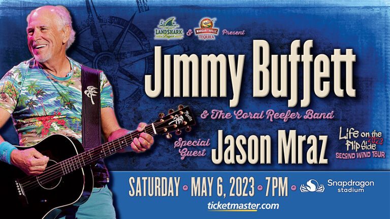 Jimmy Buffett and the Coral Reefer Band will perform at the new Snapdragon Stadium on May 6, 2023 Jimmy Buffett’s Life On the Flip Side Second Wind Tour. They will be joined by special guest, local San Diego GRAMMY Award-winning artist Jason Mraz.