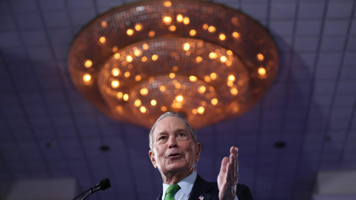 Mike Bloomberg meets a dog for the first time and shakes it's mouth like a hand. Photo by Getty Images
