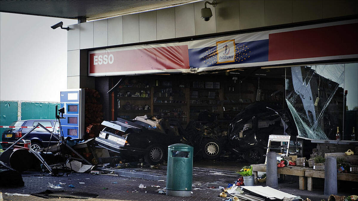 It is not known why the black sedan drove through the front of the store.