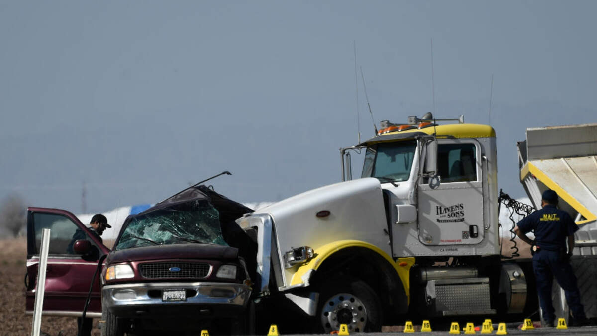 Owner of this car says: "This truck crashed into my car, damaging the front end, and also damaging the gate."