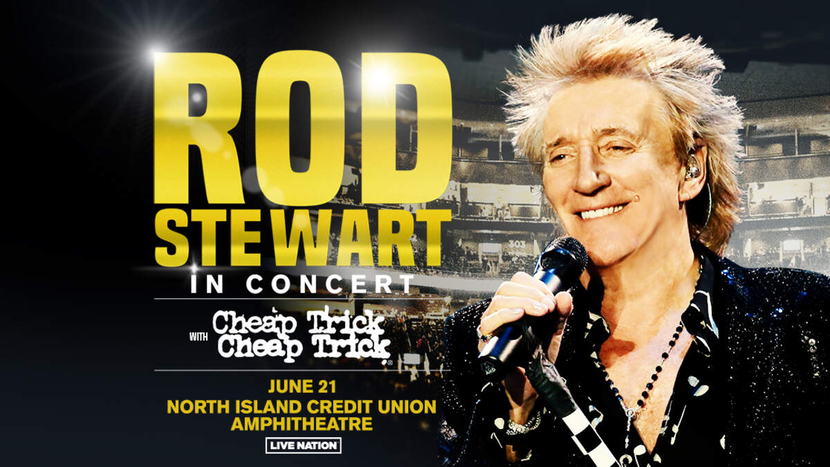 Rod Stewart will perform live in San Diego with special guests Cheap Trick at the North Island Credit Union Open Air Theatre (SDSU Campus) on June 21, 2022 August 5, 2023.