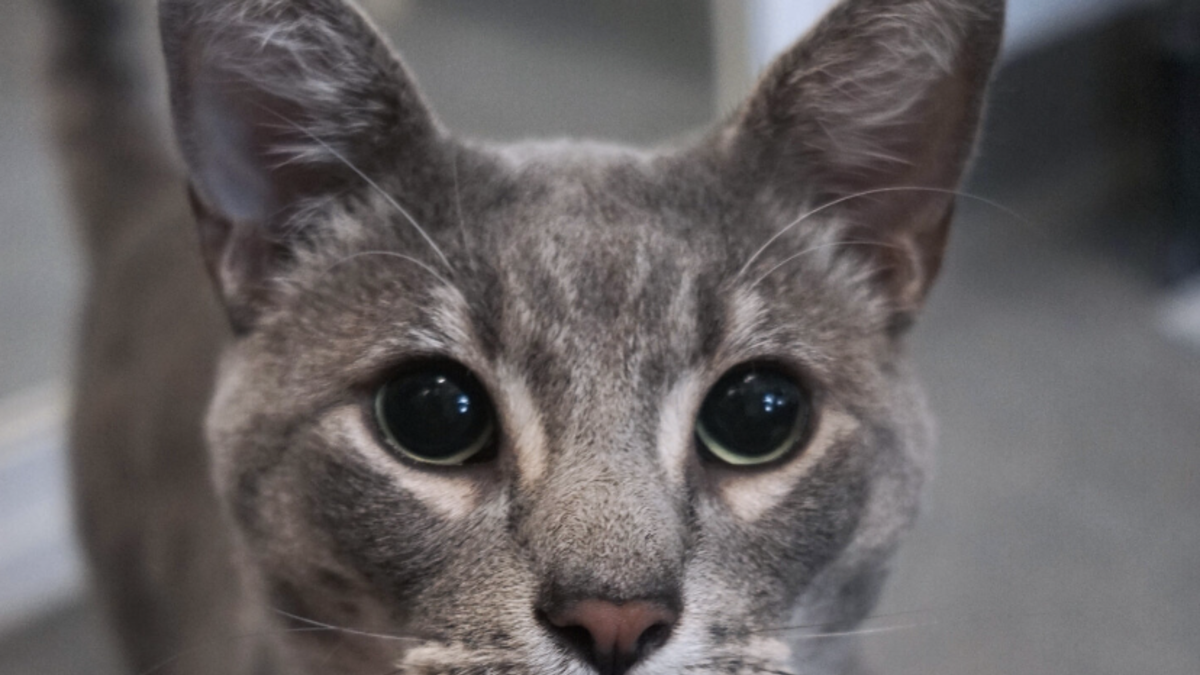 He’s almost blind, but has enough sight to find his food, water, and litter box. Walter can jump, climb and play. Say hello before touching him so he’s not startled.